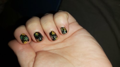 Så, detta är resultatet av karros utmaning ifrån hennes inlägg ^^ Har använt mig av ~ögon~ NYX vita ögonbas Revolution chilled with cannabis sativa NYX ultimate brights ~naglar~ Depend case coat Depend 7day, nr 7183 Depend 7day, nr 70017 Depend 7day, nr 7189 Depend 7day, nr 7175 Tar bara och förklarar naglarna för de är lite mer komplicerat tycker jag ^^ Har först tagit på base coat på naglarna och sedan tagit nagellacken och lagt i prickar på en makeup svamp och sedan duttat på nageln. Har eget detta tagit ett top coat på och efteråt tagit en svart akryl färg och målat på nageln när allt innan har torkat ordentligt. Och när akryl färgen torkat lite tog jag en tandpetare för att skrapa bort akryl färgen i den form jag vill ha på löven. Efter detta tog jag et top coat på. Akryl färgen måste man ta på och skrapa bort snabbt efter annars fäster det för mycket på nageln. #utmaning10 produkter i looken Utmaningen2297 visningar- Kommentaren lades 4 årTänkte inte på det när jag köpte paletten ville bara ha en grön men de är väldigt roligt faktiskt 😂1 gillar
