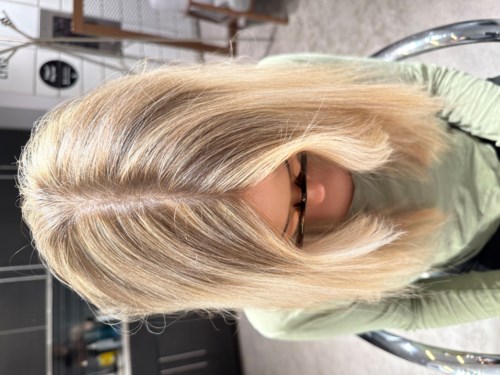 Här hade vi en fet mörk utväxt i botten på en 5-6 cm, hon va fortfarande väldigt ljus i längderna sen förra gången. Så jag gjorde bara lite i benan och i ansatserna. Mindre tid o mindre peng för kunden.12 produkter i looken Blekta slingor med airtouchteknik6378 visningarHelen