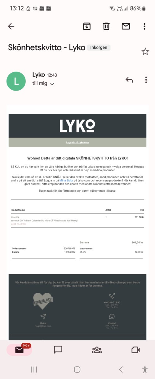 - Användarens roll: Kundtjänst på Lyko.Kommentaren lades 3 årHej Ingrid. 🤗 Om det saknas produkter i din Lyko Lovables så får du gärna registrera en reklamation eller maila oss på fraga@lyko.se så löser vi det. 🙌 Det låter Underbart att du är glad ändå men vi vill att du ska känna WOW. 💞😃2 gillar