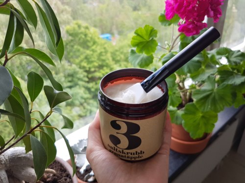 Här är en riktig fuktbomb från svenska Terrible Twins spa-serie! Skrubben är härligt rik på oljor och annat trevligt som gör torra armar och ben alldeles lena och smidiga. Man slipper smörja in sig och sparar därför tid i badrummet. Perfekt till sommaren när man vill att benen ska glänsa som gudinnespiror i timmar. Jag skojar inte när jag säger att det är en fuktbomb. Börja med att använda lite och massera in tills du tycker att det behövs mer. Annars riskerar man att känna sig inoljad som jag gjorde första gången jag använde skrubben. Eftersom den är så riklig på oljor och sheasmör tror jag att den passar bäst till att använda som spot-treatment snarare än på hela kroppen. En sak man behöver tänka på är att vara försiktig i badkaret/ståduschen för det kan bli halt. Städa efteråt, kära vänner, om ni inte vill att en stackars familjemedlem ska slå en kullerbytta i badkaret. #tävling1 produkt i inlägget Fuktbomb!166 visningarJenny