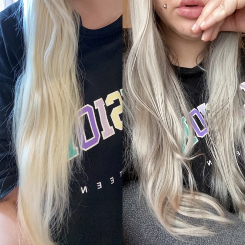 om du precis blekt håret och blivit lämnad med kycklinggult hår så kan jag rekommendera den här färgen! den tar bort allt det gula men var beredd på att den drar åt det gråa hållet. har ingen före-bild men det var verkligen gult innan.1 produkt i inlägget isblond!40444 visningarJessica