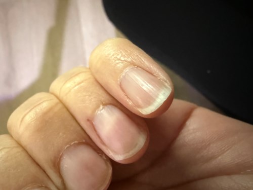 Jag har testat Essie breakfix. Jag har lite randiga naglar som även flagnar (bild) men med break fix blev det inte flagor utan mer hårda med naturligt resultat. Tanken är att man kan laga vid större brytning/jack och jag testade ist att bygga på en ojämn topp där resultatet blev mindre ojämn (var lite pillligt och tog nga omgångar lack med torktid emellan) lite som superlim. Smal snedklippt borste för lättare applicering. Bra att ha med sig även i väskan när olyckan är framme. Recensionen genomfördes på uppdrag av Smartson - testpiloten har fått prova produkten kostnadsfritt.1 produkt i inlägget Jämnar ut4 visningarSanna