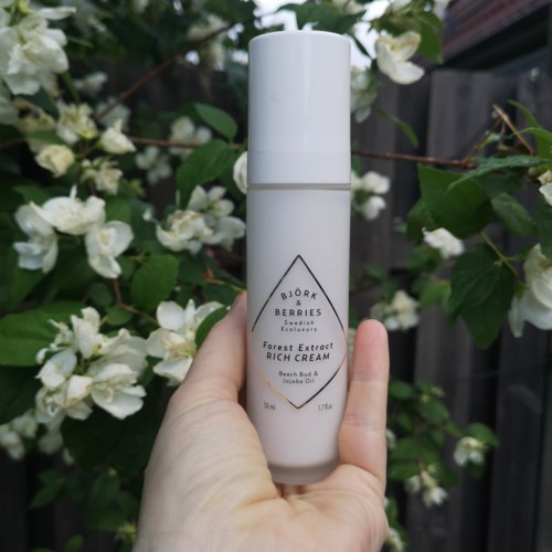 Denna ansiktskräm bockar av så många av mina krav på smörj till lilla fejset: - Återfuktande? Check! - Smidig förpackning? Check! - Upplevs som mild? Check! - Väldoftande? Check! Med en härligt fräsch med fortfarande mild doft av citrus, som gissningsvis till viss del beror på innehållet av extrakt från grön mandarin, är Björk&Berries Face Forest Extract Rich Cream riktigt mysig att använda. Doften är som sagt fräsch men mild och dämpas direkt när den appliceras på huden. Krämen är förhållandevis tjock, men det innebär inte att den på något sätt är jobbig att arbeta in. Tvärtom suger huden hungrigt åt sig av krämen och lämnar huden len, mjuk och nöjd. Jag upplever inte att krämen irriterar på något sätt, och det enda som drar av från betyget är trots allt förpackningen. Samtidigt som det känns hållbart och lyxigt att den är i av frostat glas, oroar jag mig för vad som kommer hända i det fall att den ramlar i golvet. Men det är egentligen bara en parentes, för krämen i sig är fantastisk och förpackningen både smidig och hygienisk med sin doseringspump. #lykoinflutester #björkandberries1 produkt i inlägget Rik kräm med härlig doft571 visningarKatarina