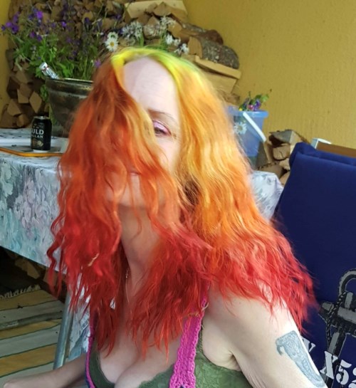 Fluorescerande gul, Fluorescerande orange & neon röd i blekt hår. Enkelt att använda, jag lägger i tvättat men torrt hår & låter sitta i minst 30 min. Håller för mig i ca 4 veckor innan jag behöver fylla på för att behålla en klar färg. #tävling1 produkt i inlägget Underbara färger4092 visningar- Kommentaren lades 3 årMed fylls på, menar jag att färgen blivit svagare & behöver påfyllning för att vara lika stark. Det är ju semipermanent färg, så den försvinner inte helt utan blir bara svagare & kan då se lite dassigt ut utan påfyllning 😊