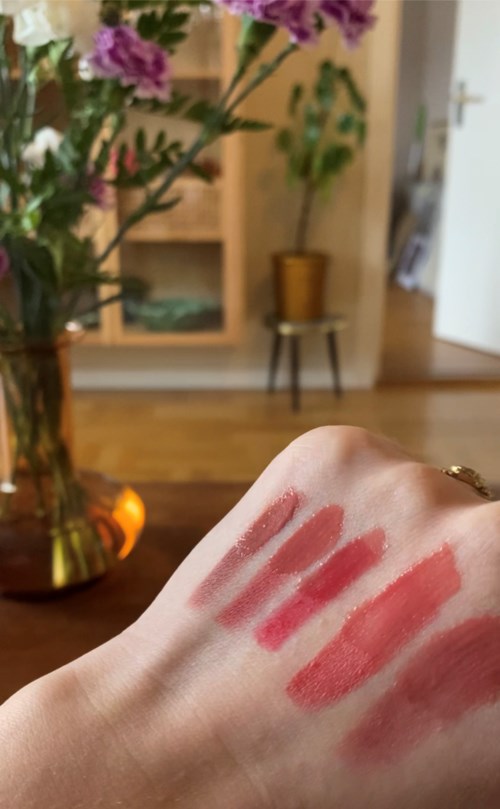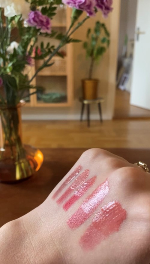 Jag har inte haft ett läppglans sen jag gick i sjuan. Det är alltså… 17 år sen. (Omg, det får 30 år att låta äldre än det är) Därför har jag inte så mycket att jämföra med. Men färgen är jättefin. Formulan är inte klibbig som jag minns mina forna läppglans som förmodligen låg i samma prisklass. Däremot är den lite tjock men det är egentligen inget negativt då den inte är helt sticky. Har använt den både solo och över läspenna eller läppstift och det är väldigt fint på alla sätt. Från vänster på bilderna är det Nyx matte lip liner - soft spoken Essence soft & precise - happy Essence soft & precise - fierce Make up store La Belle cream Make up store red angel Jag har alltså bara satt läppglans på halva produkterna.1 produkt i inlägget Nr 09 - Shadow RoseNatascha