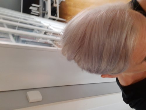 Är salt&peppar (50+, mest salt) i grunden men har blekt ner håret inför sommaren. Vitt/grått hår är torrare än "normalt" hår och suger åt sig mer av produkter. Blekta hår likaså. Det här blev med andra ord på tok för kraftfullt för mig. Stod att man skulle låta det verka i 1-5 min, hade i det i 3 min och fick snitsiga lila slingor. Försökte rädda det med Maria Nilas cool cream och det blev bättre, men slutade med att jag tvättade det med två omgångar av Kevin Murphys Maxiwash. Tog bort det mesta. Bilden visar hur det såg ut med Maria Nilas cool cream. Kommer skänka bort flaskan. Är säkert bra för många, men inte om du har extremt ljust, torrt eller vitt hår.1 produkt i inlägget Inget för vita/blekta2751 visningarLenita