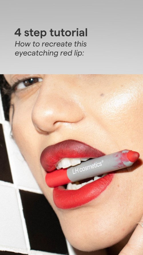 A four-step tutorial for an eye-catching red lip.4 produkter i looken Eye-catching red lipsLHcosmetics