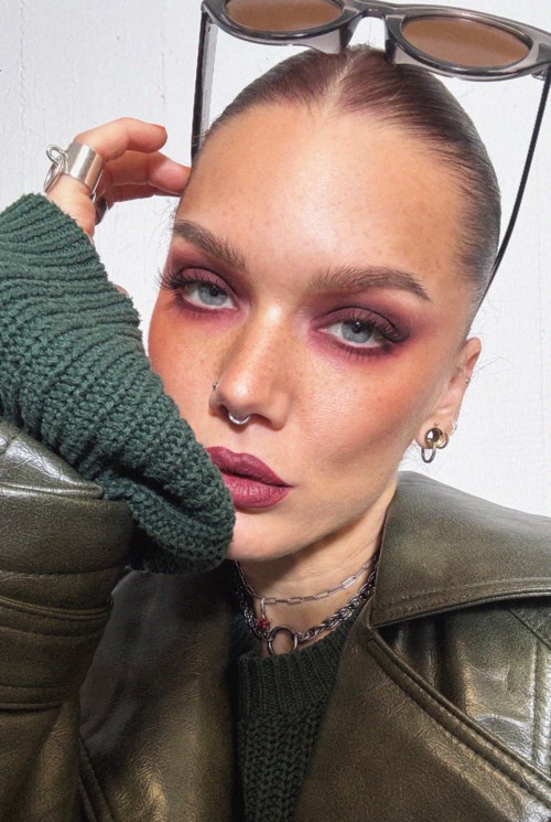 A plummy burgundy look using Singles and Biggie. Linda sculpts with Friend Zone and adds a pop of Thirst Trap as blush. Makes sense — friend zones stay in the shadows, thirst traps make you blush. Zero mixed signals.7 produkter i looken From friend zone to thirst trap 💋LHcosmetics