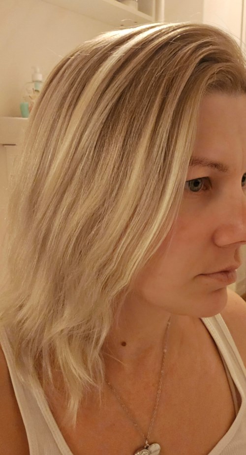 Efter att ha använt mej av olia 10.1 och då inte fått bukt på själva utväxten så provade jag olia 110 själva färgen på längderna blev exakt vad jag förväntat mej men även denna gången hjälpte inte färgen själva utväxten, troligen behöver jag bleka håret helt för att de ska hjälpa (något jag avstår från) till en början upplevde jag utväxten som orange men har nu efter någon tvätt och silvershampo tyckt den ser mer passande övergående ut till övrig färg. Rekommenderar alltid olia då jag tycker håret blir fint efter, själva färgningen luktar helt ok och färgen håller1 produkt i inlägget Ganska nöjd5700 visningar - Inlägget skapades 1 år