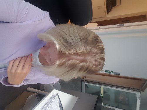 Hej! Jag har nu en väldigt ljus blond färg, lite lätt mörkare utväxt. Skulle vilja slänga i en toning nu mellan frisörbesöken, för att jämna ut färgen och få det lite ljusare, gärna lite åt vitare blondt/grå hållet. Har lite gul ton i det blonda som jag samtidigt önskar att bli av med. Är Wella Color Fresh ett bra val till detta och i så fall, vilken ska jag använda? Eller är där en annan toning som skulle passa bättre? Tacksam för svar! /Linn1 produkt i inlägget Tona blondt hår ljusare738 visningar- Användarens roll: Frisör på Lyko.Kommentaren lades 7 årHej Linn! Detta är endast en lättoning och kan endast justera en nyans ej ljusa upp. En toning kan ljusa upp cirka ett steg. Möjligtvis att SCHWARZKOPF IGORA VIBRANCE 9½-1 PLATINABLOND CENDRÉ kan ge en lite kallare nyans men kommer inte att bli exakt som längderna tyvärr.