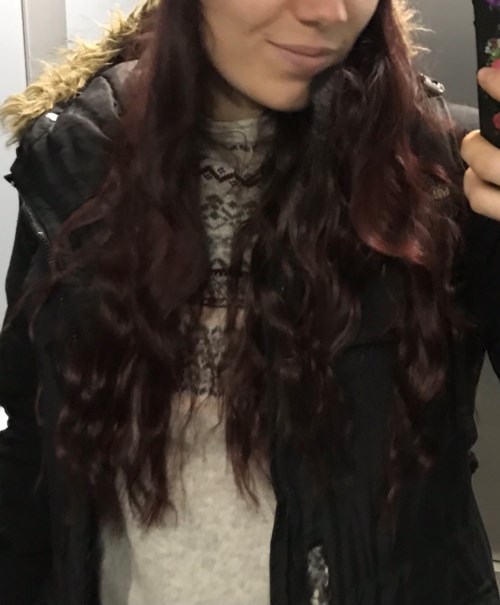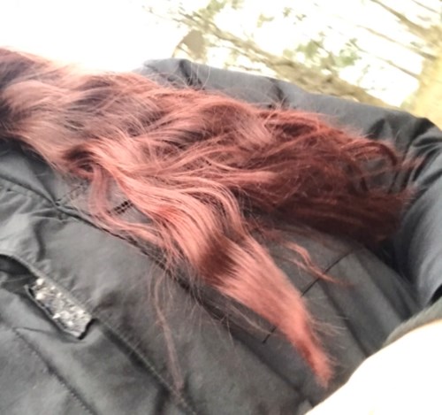 Färgen är mer synlig när jag får dagsljus/stärkt ljus på håret (bilderna visar färgen i inomhusbelysning och när jag är utomhus). Färgen blev lite rödlila tyckte jag, men jag är nöjd. Det negativa var dock att det var svårt att få tvättat färgen ut av håret (sto i duschen i 15-20 och duschvattnet var fortfarande rött. Och det färger väldigt lätt av i duschen och andra platser, jag var tvungen att tvätta golvet efteråt (det har jag aldrig varit tvungen göra innan efter att ha färgat håret). Använd handskar och tvätt bort färgfläckar så snabbt som möjligt!1 produkt i inlägget Ruby Red på naturligt mörk brunt hår9981 visningar