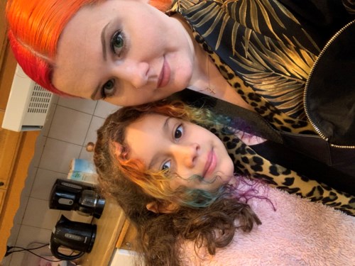 Efter att ha blekt mitt hår två, tre gånger slängde jag i cleo rose i halva och psychadelic sunset i andra halvan. Det blev SÅ häftigt! Färgerna är så levande. Nu har jag haft dem i cirka 6 veckor och det har börjat mattas av men är fortfarande väldigt bra. Rekommenderar verkligen! Har även blekt slingor i min dotters lugg och lagt i (kommer inte ihåg namnen på färgerna men) rosa, orange, gul, grön, blå och lila som man ser på en bild. Alla färger från manic panic.1 produkt i inlägget Cleo rose och psychadelic sunset6385 visningar- Kommentaren lades 5 årVilka häftiga färger och vilken gullig dotter - så fin i sina regnbågiga lockar 🥰1 gillar