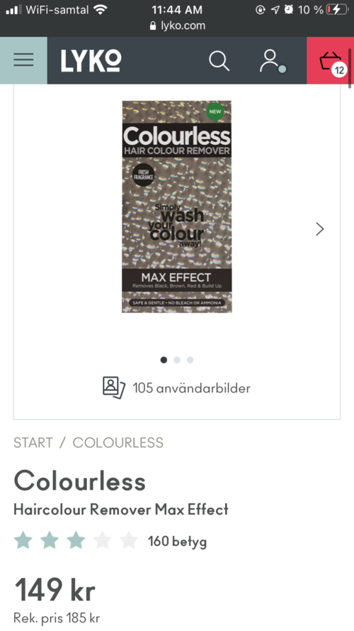 - Inlägget skapades 4 årVar rätt trött på min urtvättade ojämna lila färg så använde denna avfärgningen som va jättebra! Som recentiorerna säger så stämmer det inte alls att den har en fräsch doft, den har en väldigt kemikalie stark doft som håller i sig i håret och duschen väldigt länge efter användning. Där står att man inte får färga eller bleka efter att ha använt den och rekommenderar att inte göra något förutom silverschampo förens två veckor efter för då är doften helt borta ur håret. Det luktar mest direkt efter duschen. Jag rekommenderar att ta en handfull av den orange geggan man får så man använder den mer än en två gånger för att va säker på att all av färgning försvinner. Vi får väll se om jag bleker mellan sektionen i håret nästa vecka då det är så mörkt😛 Ger den 10/10 då min gamla toning va helt borta med!62 visningar