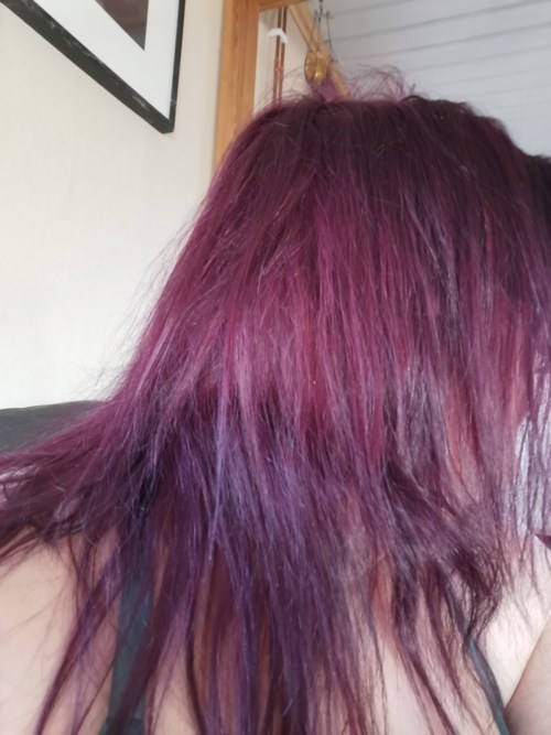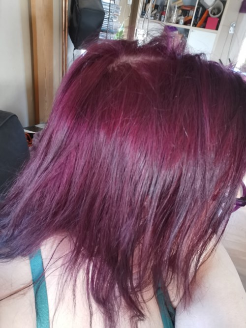 Håret blev inte lila alls, bara vinrött. Inga blå toner i. Mitt hår var urtvättad rött med ca 10 cm askblond utväxt. Rekommenderar inte om man vill bli lila.1 produkt i inlägget Dark cherry5981 visningar- Användarens roll: Frisör på Lyko.Kommentaren lades 1 årHejsan Terése, jag svarade dig nyss på ett annat inlägg 🥰 Typiskt att färgen inte blev som du önskat! För att vi lättare ska kunna guida dig till val av rätt färg kan du göra vårat hårfärgstest 💜 lyko.com/sv/harfargstestet Ha det så bra 🤗