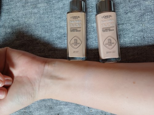 Jag letade efter något att använda under sommaren, något som helst inte känns på ansiktet med som ändå jämnar ut lite. Detta är jackpott! Sitter så fint på huden och lätt att använda. Jag köpte först "2-3 Light" och lade sedan till "1-2 Rosy Light" eftersom jag behöver båda för att perfekt matcha hela ansiktet (vem visste att man kan ha 2 ganska olika färger i ansiktet samtidigt 🤓😅). På bilderna är "2-3 Light" vid handleden och "1-2 Rosy Light" mot armbågen1 produkt i inlägget Ny favorit!5294 visningar