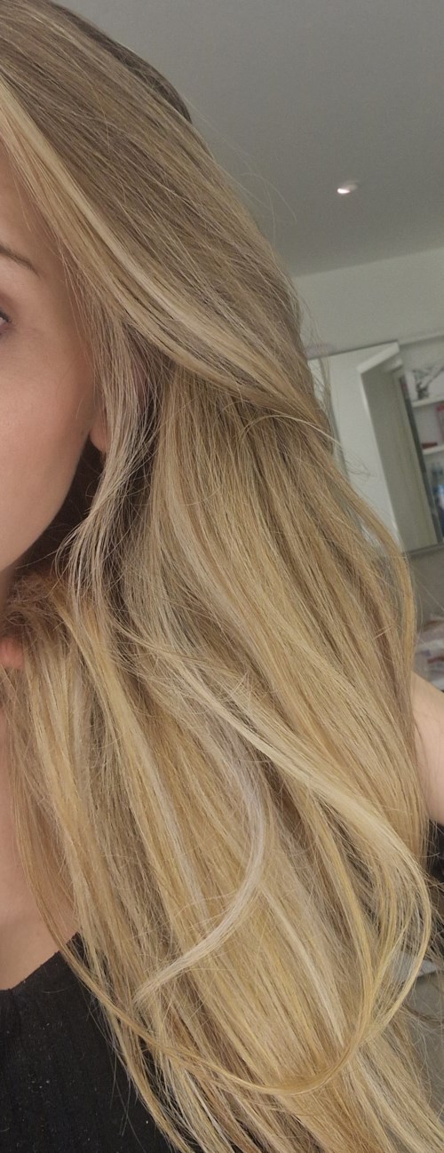 Hej! Har blekta slingor som blev lite olika nyanser varav vissa vita, vissa gula, och vissa ner orange. Är mörkbrun i grunden. Jag köpte först Vanilla sky + ice ice blondy pga jag ville ha en askig beige nyans, och tänkte att mitt ljusare parti var en 9-10a. Ingen skillnad. Köpte då Frozen sand. Liiiite skillnad. Testade även igora Cendre, lite skillnad. Men givet att det fortfarande var rätt olika skillnader köpte jag tillslut Portobello men hade bara i 3-4 minuter då jag började se tendenser till grönt. Men efter 1-2 tvättar blev det bra, som på bilden! Jag vill dock ha lite ljusare än vad Portobello gav mig. När tvättas den ur? Och vad kan jag gå in med istället? Bifogar även en bild på hur det såg ut innan Portobello (den bilden när jag har rakare hår). Bör jag ha en neutral pga mina kalla partier som är vita för att inte riskera grönt? Hur gör jag då om jag vill vara lite kall men ljus? Vill hitta den perfekta toningen... Hur skulle tex satin pearl bli?1 produkt i inlägget Vilken toning?7782 visningar- Kommentaren lades 2 årHej! Alltså åh jag provade så många olika men den som fick bukt på det var Four Reasons Portobello, MEN hade bara i den i några minuter för annars hade den blivit för mörk och även grön. 😂