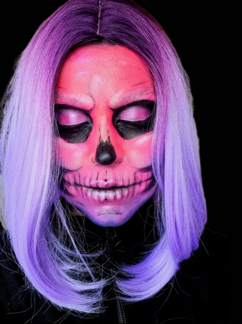 Får inte nog av Halloweensminkningar! Ge hit en pensel å lite färg så drar vi igång!🤩 Döskallar är pilligt men gud så häftigt det blir i slutändan! Ett tips är att utgå och följa sin egen benstruktur så gott det går! Känn och kläm i ditt fejs till du hittar rätt! Referensbilder på riktiga skelett eller någon annans coola make är också bra! Glöm inte att göra egna tolkningar och överdriv gärna former och linjer för att få mer effekt! #HALLOWEEN237 produkter i looken 💜Pink n' purple skull🩷Moa