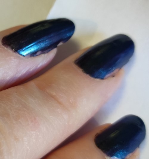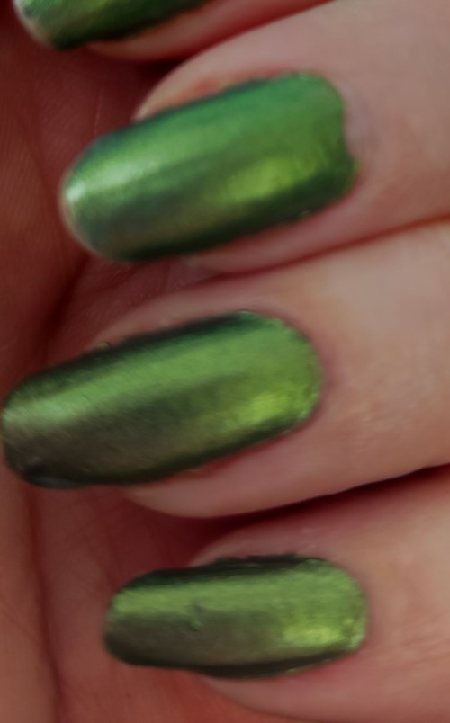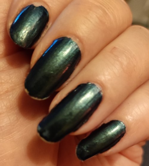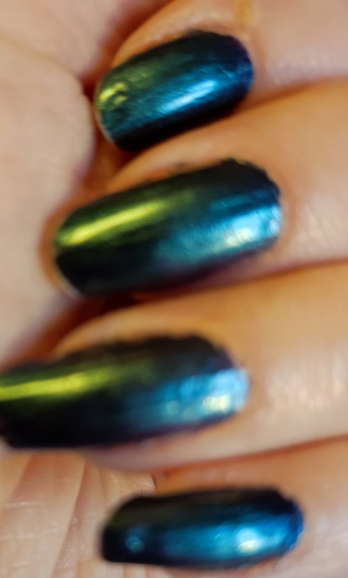 06 kan nog vara mitt absoluta favoritnagellack nu. En grönguldig metallic som blänker och dessutom sitter jättebra på naturliga naglar. Första bilden ett lager och alldeles nymålat så ursäkta det på huden, sista gröna fem dagar senare. Älskar mettalicen, synd inte den effekten finns i fler färger. 02 en snygg mörkt blågrön som tyvärr inte är så iridiserande som den blir på foto. Blir mörk och jag upplever den som enfärgad. Sitter jättebra. Första bilden blå är bara ett lager men visar färgen som jag upplever den rätt bra. Sista bilden med den är efter sju dagar, flagnat väldigt lite, ännu mindre på handen som inte finns på bild och är min dominanta. Sista bilden är en sån där "testa olika nagellack innan jag tar bort nagellacket för veckan", med 06 och 02 bredvid varandra. (På långfingret testade jag en krackelerande lila ovanpå den gröna 06.)