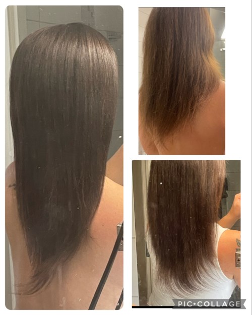 Jag har väldigt krulligt och torrt hår som konstant är frissigt och går av. Ingen hårolja i världen kan rädda mitt slitna hår, oljan sugs upp av håret direkt. Testade denna serie och efter 3 användningar ser jag hur håret har läkt!! Helt otroligt. På bilden ser ni innan första omgången, efter andra omgången och sen efter tredje omgången. Bilderna är tagna efter fönibg. De kluvna topparna har läkt, är i chock!1 produkt i inlägget Produkter som gör skillnad3193 visningar- Inlägget skapades 5 år