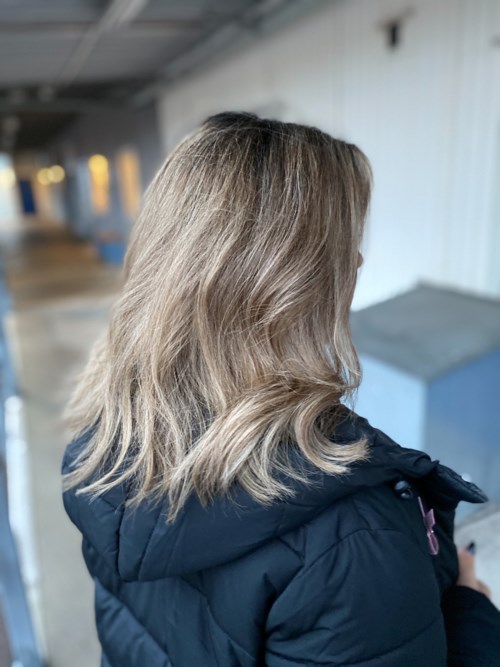 Här har vi en tjej som helst av allt hade velat bli en super kall blond, då hon är väldigt mörk i sig själv är det svårt att få bort värmen och det tar framförallt tid att bli ljusare! Det vi gjorde här var att slinga upp henne och håret emellan slingorna la vi en färg som är ett steg mörkare men kall. Detta skapar ett mycket kallare intryck! Och framförallt gör att färgen är fin på vägen till ett ljusare hår 😍😍 Rekommenderade såklart mitt favorit silverschampo ifrån Lanza för att underhålla det kalla, super pigmenterat utan att slå över till blå eller violett och viktigaste av allt det torkar inte ut håret!✨7 produkter i looken Lyx blond✨Olivia