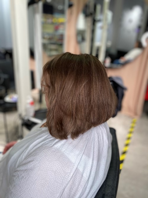 Denna kund har varit hemmafärgad i flera år, så jag har kämpat ett tag för att ta henne från mörkt till ljusare men ändå behålla en mörk botten. Som det syns på förebilden så har hon varit ganska varm på vägen, men nu redan efter tredje gången har vi lyckats fått upp henne till en super fin kallnyans!😍 så snyggt5 produkter i looken varm till kall ✨Olivia