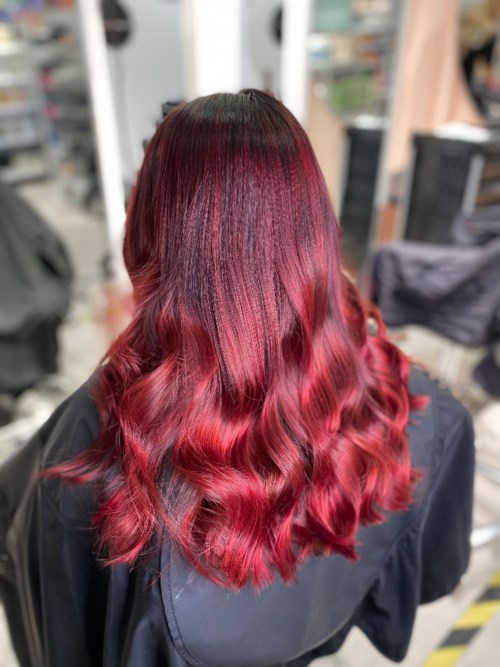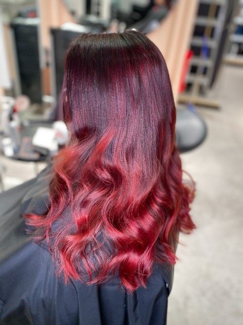Hur snyggt blev inte detta?😍😍 Flyttade upp det ljusa med slingor och sedan la på en riktigt snygg kallröd färg! För att underhålla en sån här färg rekommenderar jag att man kör Revlons ”färgbomb” nr 500! 👠9 produkter i looken Red red red👠Olivia