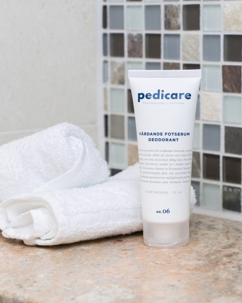 Pedicare Vårdande Fotserum Deodorant är ett svalkande, deodoriserande fotserum mot varma, illaluktande fötter som även har mjukgörande egenskaper👣1 produkt i looken Svalkande och vårdande fotdeodorant👣pedicare