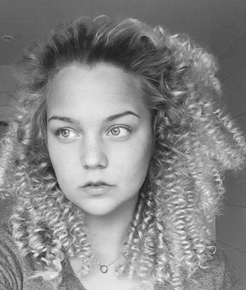Angelica i sina krullor gjorda genom att vira upp håret i sektioner med sugrör...