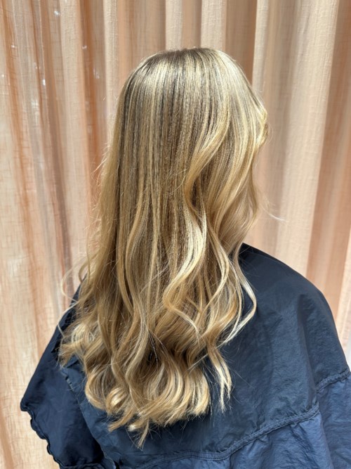 En rejäl uppfräschning på fina Emma. Klippte av en bra bit. Slingade mycket runt hela hårfästet och lite glesare i resten av håret. Då blir utväxten softare och det är ljust och fräscht runt ansiktet och nacken. Så snyggt! 😍 #lykokupolen6 produkter i looken Naturliga highlights 💎