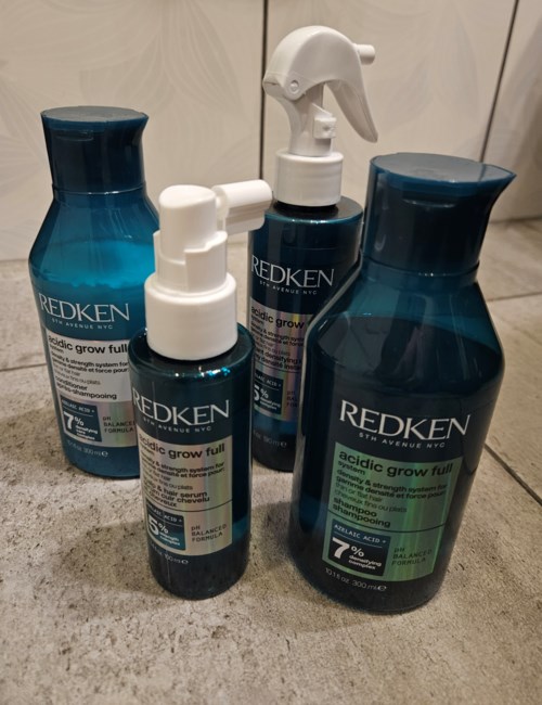 Jag har testat fyra produkter från serien Redken acidic grow full system. Schampo, balsam, serum för hårbotten och leave-in treatment spray. Kan inte särskilja vilken produkt som gör var för håret men i alla fall. Efter jag använt alla produkter vid två tillfälle var jag inte långt ifrån från att gå tillbaka till mina vanliga hårprodukter. Mitt hår reagerade på produkterna genom att bli supertrassligt, vilket jag annars inte har några problem med. Men jag är testperson för produkterna och de ska testas i två veckor, det gjorde att jag fortsatte. Jag är glad för det! Mitt hår är fortfarande lite trassligare men definitivt inte lika mycket som efter de första två tvättarna, därav blir det endast fyra stjärnor. Jag upplever att håret känns starkare och fylligare. Även längre även efter den här korta tiden. Recensionen genomfördes på uppdrag av Smartson - testpiloten har fått prova produkten kostnadsfritt.1 produkt i inlägget Trassligt46 visningarSara