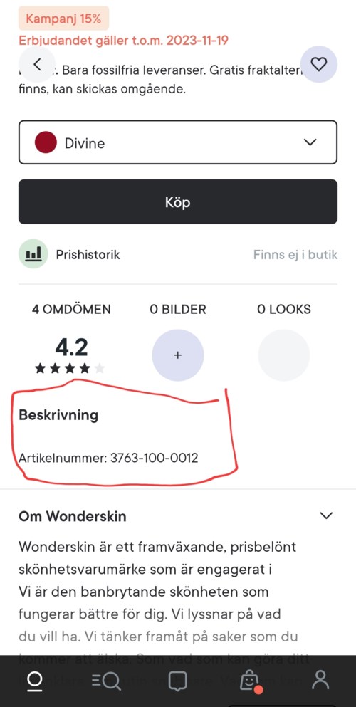 Vad är det här för produkt? 🤔 Under "Beskrivning" står endast ett artikelnummer, se det jag ringat in med rött på den bifogade bilden/skärmdumpen.1 produkt i inlägget Hej!8565 visningar - Inlägget skapades 5 år
