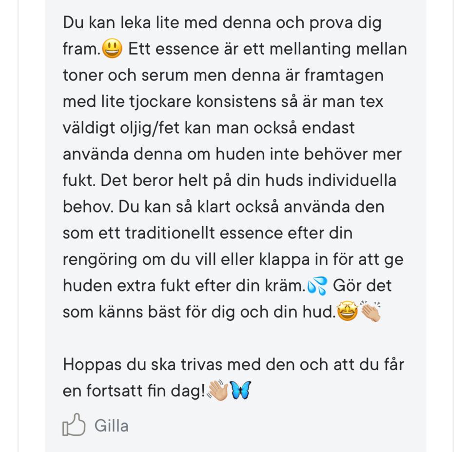 Hej! Lägger jag denna gel innan serum och nattkräm eller efter?🤨 Själv så har jag kombinerad till känslig hy. Tack för svar!😊1 produkt i inlägget Kombinerad/känslig hy1002 visningar- Användarens roll: Kundtjänst på Lyko.Kommentaren lades 2 årHejsan Simona! 😇 Det beror lite på vad det andra serumet är för typ av serum och vad det har för effekter på huden 😊 Eftersom detta är lite som en variant av serum kan du använda detta ensamt tillsammans med din nattcreme. Sedan kan du använda ditt andra serum de nätter du inte använder denna ✨ Jag kan varmt rekommendera att göra vårt hudtest lyko.com/sv/hudtestet, där får du hjälp av våra hudterapeuter med en hudvårdsrutin som är anpassad just för din hud! ❤ De ger en massa bra tips, nya idéer och hjälp! Hör av dig om du har några ytterligare funderingar, du vet vart vi finns 🤗