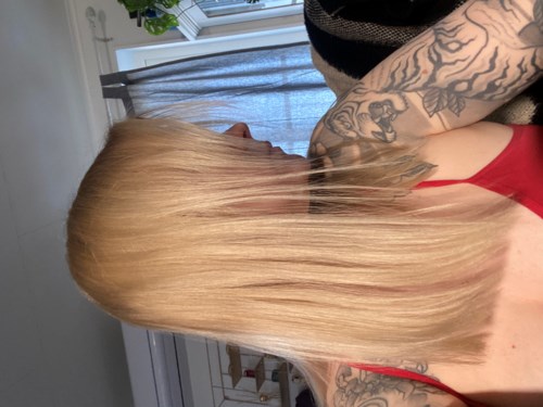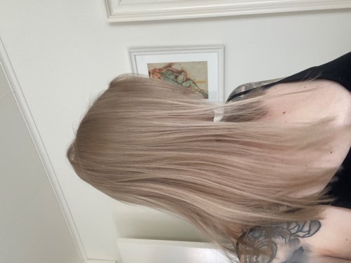 Efter en colour remover så var botten fortfarande rätt så gul/orange så fick bleka upp botten lite och lät längderna vara då dom var rätt torra. Slängde sedan i cool cream och fick en helt underbar askig/beige blond färg!1 produkt i inlägget Kanon11731 visningarSofia