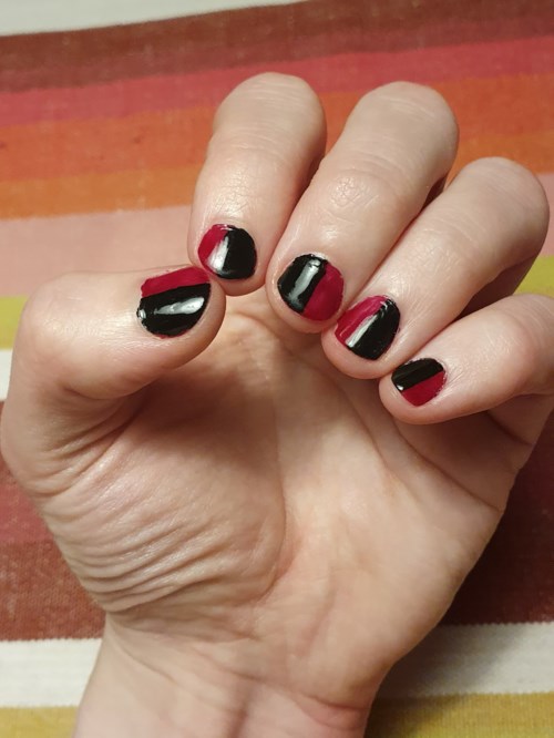 Detta serum är likt ett annat serum jag testat av Vichy, men är ännu bättre! Designen av flaskan är snygg och har en bra passform i handen vilket underlättar när man ska använda pipetten som är inbyggt i locket. Pipetten som är av glas har inbuktad form längst fram vilket gör det enkelt att skrapa av serumet på utsidan av den samt att silikonhatten är väldigt tät och drar upp en bra mängd av serumet som räcker mer än tillräckligt för en omgång! Konsistensen på serumet är dryg men inte segt vilket gör det lätt att massera ut på områdena där det behövs. Mitt problemområde är T-zonen och får speciellt torr hud över ögonbrynen. Detta serum går in väldigt snabbt, ca 60 sekunder, och hjälpte nästintill omedelbart med torrheten och gjorde att ansiktskrämen behölls i huden längre och kunde göra sitt arbete. I helhet är jag väldigt nöjd med serumet! #Lykoinflutester #Vichy1 produkt i inlägget Bättre än förväntat!1420 visningar- Inlägget skapades 3 årFrån ungdomens emo-dagar till nutiden. Förr så hade jag endast svarta naglar för att jag var mörk och svår men med åren så tillkom en röd nagel inspirerat av Penn Jillette. I onsdags kände jag att det var på tiden att testa något nytt och med samband att min sambo är duktig på nagelkonst ville jag testa att göra 50/50 naglar. Jag har använt Essie 88 Licorice, 50 Bordeaux, och använde vanlig maskeringstejp.112 visningar