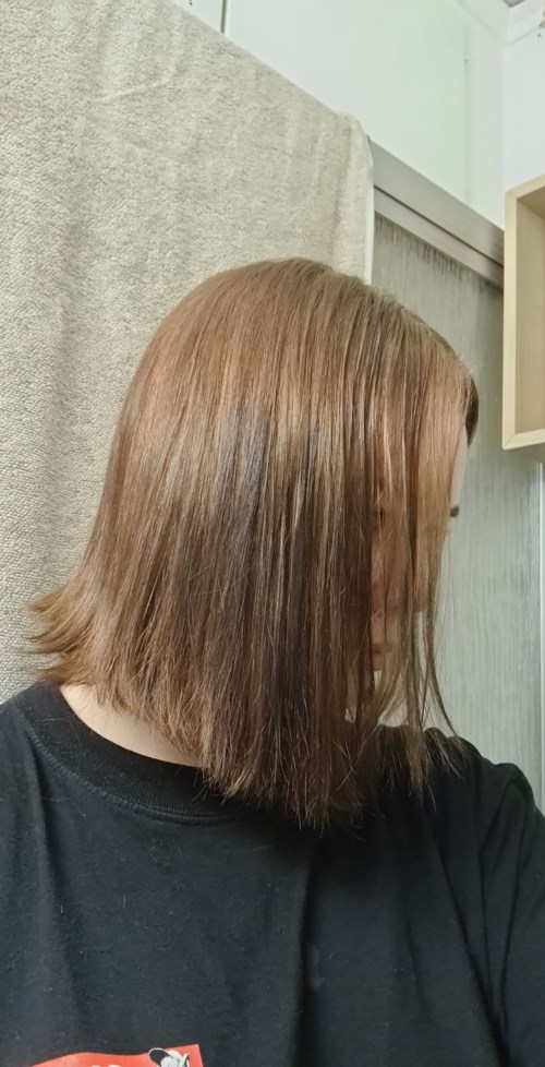 Har haft alla möjliga hårfärger (som ni ser på profilbilden) askig blond i somras till mörkbrun till svart. Haft svart en tid och endast tonat utväxten för att spara på kvalitén. Kom inte underfund med hur jag skulle återgå till en ljusare brun utan att bleka sönder håret (har kall mörkblond, råttfärgat under). Hittade denna och körde 2 vändor på samma dag (på egen risk!!!) för att jag upplevde inte att den slet alls mycket första vändan. Man kan se att det svarta är kvar i längderna efter första och efter andra är de betydligt ljusare men ändå där. Lukten är inte trevlig men jämför man med resultatet och att det inte slet svinmycket på håret så är det lätt värt. Notera dock att mitt hår nu gick åt det rödare hållet. Kanske kan man testa silverschampoo om några dagar men iallafall, NÖJD.1 produkt i inlägget HETT TIPS