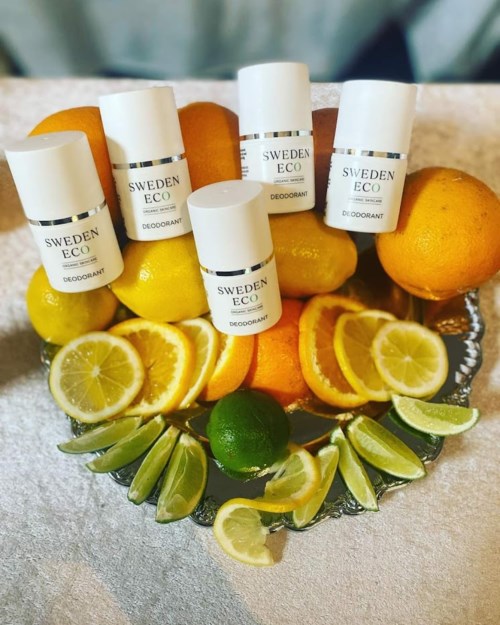 - Inlägget skapades 2 årDeodorant från Sweden Eco. 100 % naturlig. Bas av rättvisemärkt aloe vera. Naturliga salter som motverkar dålig lukt. Frisk citrusdoft från citron, lime och apelsin. Vegancertifierad. Unisex.693 visningar