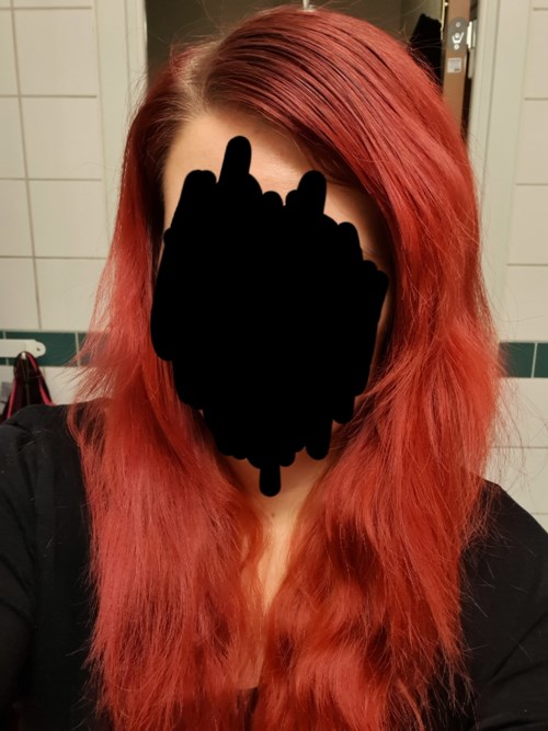 Mycket pigment, blev väldigt rött. Inte så mörk röd som på bilden men jag hade väldigt ljust hår innan. #tävling1 produkt i inlägget 66/45 red satin39843 visningar