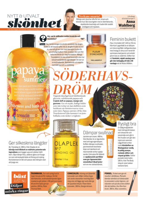 Aftonbladet Söndag recenserar treclemoon's nya doft Papaya Summer som en "Söderhavsdröm", vad tycker du? 💕😎1 produkt i inlägget Aftonbladet Söndag1309 visningar- Inlägget skapades 6 årHar ni provat vår nya storsäljare Papaya summer, ännu? Utmärkt så här när kylan kryper på. Njut av sommaren igen i badet eller duschen ❤️242 visningar