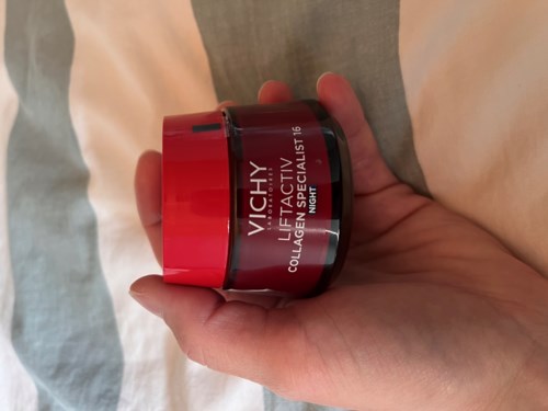 Liftactive Collagen Specialist 16 Night doftar gott ur burken men jag upplever en förändring i doften när krämen appliceras på huden. Efter applicering känner jag en tydligt tyngre doft av kanske cederträ eller sandalwood (jag är dålig på att identifiera dofter). Denna tyngre doft hänger kvar i ca 2-3 tim innan den klingar av. Nattkrämen doftar mer än någon annan nattkräm jag provat innan och för mig doftar den för mycket. Konsistensen är lätt och behaglig men lite trög innan man värmt upp den i händerna. Den appliceras lätt på huden och känns behaglig och återfuktande. Dock rullar den sig om man masserar/kliar/rör sig i ansiktet en stund efter appliceringen. Jag har använt krämen både efter rengöring och rengöring/peeling av ansiktet/hals och den rullar sig efter båda. Jag har inte märkt några större förbättringar på min hud, men då leveransen var försenad och inte kom fram förrän 13 juni antar jag att jag hade behövt använda produkten över en längre tid för att se större förändringar. På grund av den tydliga doften efter applicering och att den rullar sig ger jag den betyget 3⭐️. Recensionen genomfördes på uppdrag av Smartson - testpiloten har fått prova produkten kostnadsfritt.1 produkt i inlägget Doftar gott ur burken men förändras vid applicering301 visningarvicky_axs