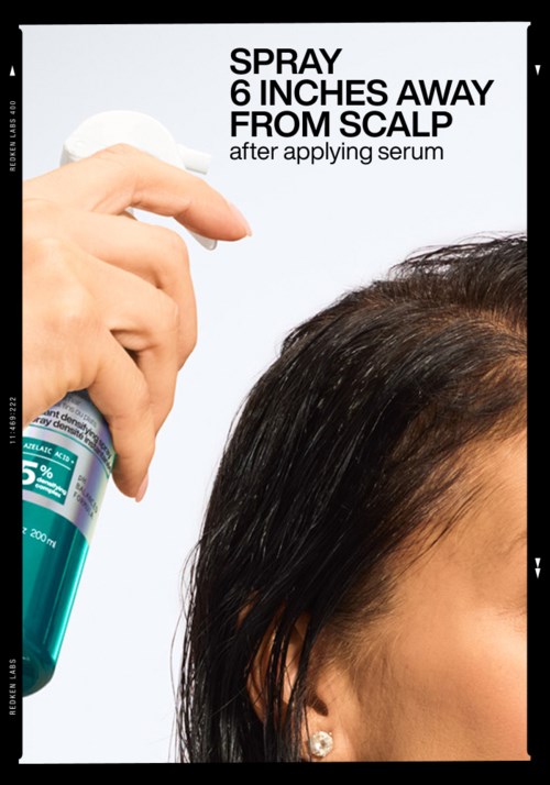 4) Spray the AGFS Instant Densifying Spray 15 cm away from hair, on clean, damp hair. Comb through from mid-sections to ends. 🖤