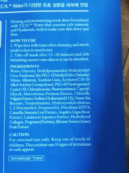 Marine Hyaluronic Revital Mask nnehåller även glycerin, allantoin och betain som även de återfuktar och de två senare ingredienserna lugnar även stressad hud. Extrakt från trollhassell, eucalyptus och pepparmynta balanserar produktionen av sebum, tightar till porerna och förebygger acne. Grönt te-extrakt är rikt på antioxidanter som skyddar huden från extern miljöpåverkan och lindrar även rodnad.