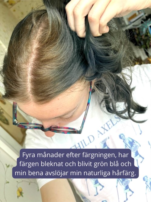 Ibland kan färgen visa gröna toner. Denna effekt kommer normalt att försvinna inom de första dagarna efter färgningen. Om ditt hår är kemiskt blekt kan den gröna tonen bli starkare. Prova alltid att färga en liten hårslinga först innan själva färgningen. Detta ger dig önskat slutresultat.