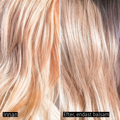 Ett milt balsam med violett ton som skonsamt rengör samtidigt som guldiga och röda toner hålls borta från blonda och grå hår. Framtaget för att förstärka hårets livfullhet och ge supermycket lyster. Innehåller protein från ris och quinoa som stärker och skyddar håret.