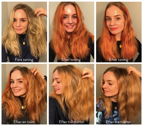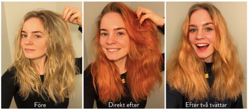 Knalligt och sprakande, alltså! Har dokumenterat hur färgen sitter efter några tvättar. Se bifogade bilder :) LITE TANKAR: Jag har aldrig haft rött hår tidigare. Istället brukade jag reta min storasyster när vi var små och kalla henne för morot (sjukt störigt – förlåt, Madde!). Nu i vuxen ålder har jag dock blivit VÄLDIGT nyfiken på att prova, men aldrig kommit till skott. Så för att liva upp mitt trötta pandemihår testade jag den här lilla tändsticksasken och... ...WOW! Det var som att duscha i eld, på ett bra sätt! Färg, färg, färg! Precis vad jag ville ha. Obs, jag fick en extra stark boost eftersom jag sket i instruktionerna (de rekommenderar att ha itoningen upp till 20 min). Istället klämde jag ett avsnitt Gift vid första ögonkastet + gjorde min hudvårdsrutin. Så i drygt en timme fick allting marinera. När jag skriver det här har jag redan hunnit använda färgbomben en gång till. Då gjorde jag det lilla misstaget att köra en hårinpackning INNAN färgbomben. Vilket gjorde att mitt hår inte plockade upp färgen lika bra. Om ni gillar att fylla på med färg gradvis så rekommenderar jag den metoden. Ett annat tips för att bygga upp färgen gradvis, är att blanda ut färgbomben med balsam i en bunke innan applicering. I övrigt så rekommenderar jag plasthandskar när ni mojsar ut allting. Annars kan färgen bygga bo på händerna och det är ju störigt (även om det såklart bara är tillfälligt). BAKGRUND: Jag brukar vanligtvis använda Maria Nila Colour Refresh (Pink Pop och Azur, Azur sitter rejält så varning ifall ni tröttnar fort!) samt Revlon Nutri Color (Pale Platinum och Light Beige). När jag körde den här färgbomben hade jag inte blekt håret på ett halvår, så färgen har TYVÄRR inte fastnat i min utväxt. Som vanligt med färgbomber alltså, oavsett märke :( Om du som läser detta någonsin uppfinner en färgbomb som fäster på obehandlat hår så får du gärna skriva ditt nummer här i kommentarerna, så kan jag ringa och tacka personligen. Toodles! Mvh Marie2802 visningar- Användarens roll: Medarbetare på Lyko.Kommentaren lades 4 årFörresten så kom jag på en sak till som jag glömde skriva! Någon dag efter jag hade färgat håret så var det ett litet barn som gick förbi på gatan och stoppade sin mamma och sa "mamma, hon har rött hår". Det tyckte jag var ett bra betyg. Det är ju verkligen rött! :D3 gillar