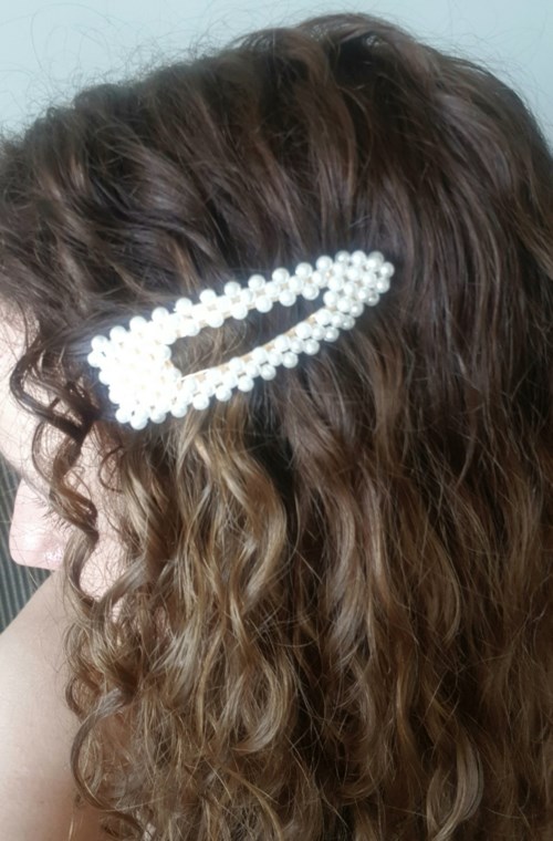 2-pack hårklämma fylld med vita pärlor med en spetsigare ände och en bredare