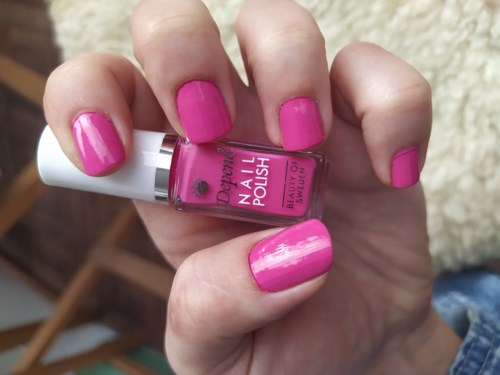 This nail color is a vibrant pink. It's easy to apply. The brush is wide and easy to use. It looks it's gonna stay for a long time. I've used depend's base coat before I use the nail polish. #tävling1 produkt i inlägget Good enough nr 653 - Inlägget skapades 4 årBetyg: 4 av 5Verifierad köpare