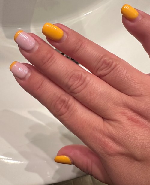 På bilden har jag använt mig av Simple Smile och Sparkling Simplicity. Första bilden är de nygjorda och andra bilden 3 veckor gamla och sitter i skrivande stund (3v+1 dag) fortfarande kvar! Tänkte se hur länge de sitter kvar, så länge jag står ut med utväxten 😅😋😃1 produkt i inlägget Depend Gel iQ4671 visningar - Inlägget skapades 2 år