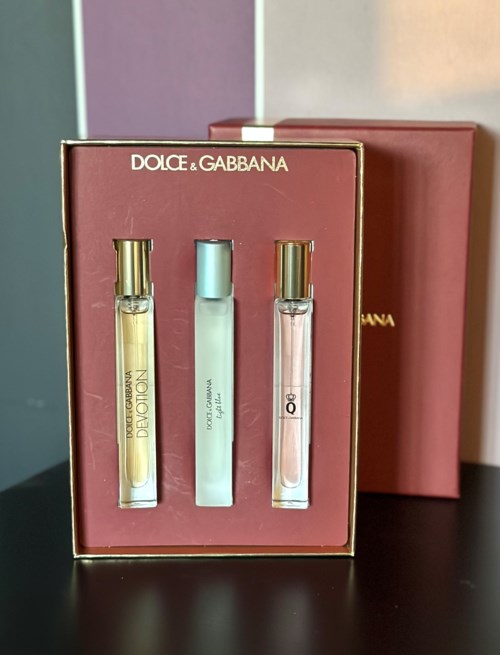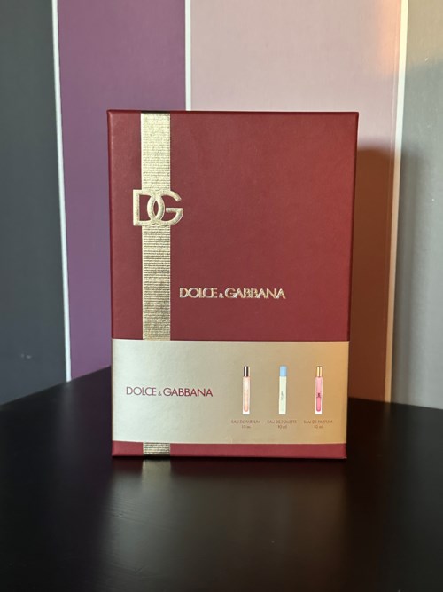 Presenteras i en exklusiv ask av röd sammet, prydd med den ikoniska DG-logotypen. Detta set innehåller tre av Dolce&Gabbanas mest ikoniska dofter, och den noggranna uppmärksamheten på detaljer fängslar sinnena samtidigt som det hyllar Dolce&Gabbanas tidlösa elegans.