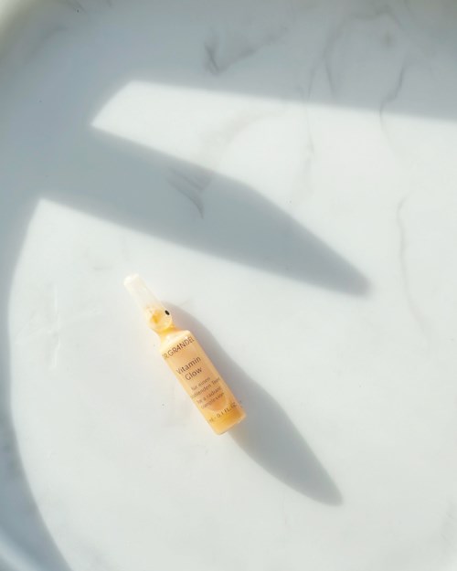 Engångsampull Vitamin Glow ger en fantastisk lyster, förnyar och föryngrar huden tack vare de aktiva ingredienserna C-vitamin, Retinol (Liposomally Encapsulated) och Pink Grapefruit Extrakt. C-vitamin som är den bästa antioxidanteffekten mot för tidigt åldrande av huden skyddar den mot yttre stressfaktorer. C-vitamin stimulerar hudens egen kollagenproduktion vilket gör huden fast, slät och fyllig samt har även en reglerande och blekande effekt på pigmentfläckar.