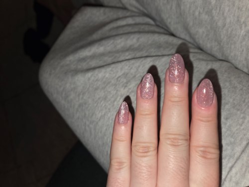 Möt “Aurora”, vår sagolika kattöga-nagel i mandelform. En magisk och förtrollande nagel som kombinerar den mystiska dragningskraften hos kattögon-naglar med drömlika, sagolika element i rosa och gyllene toner.